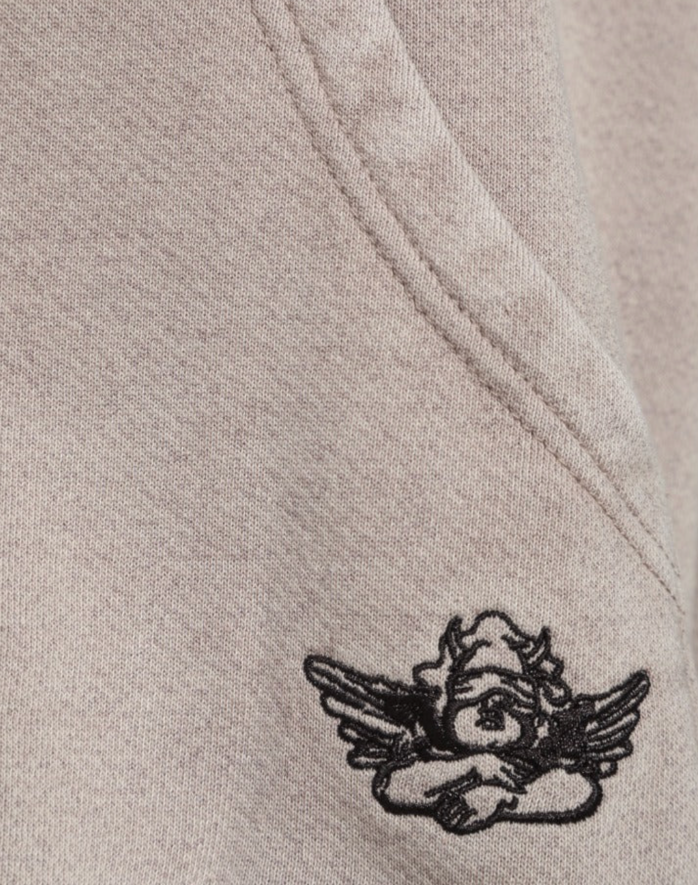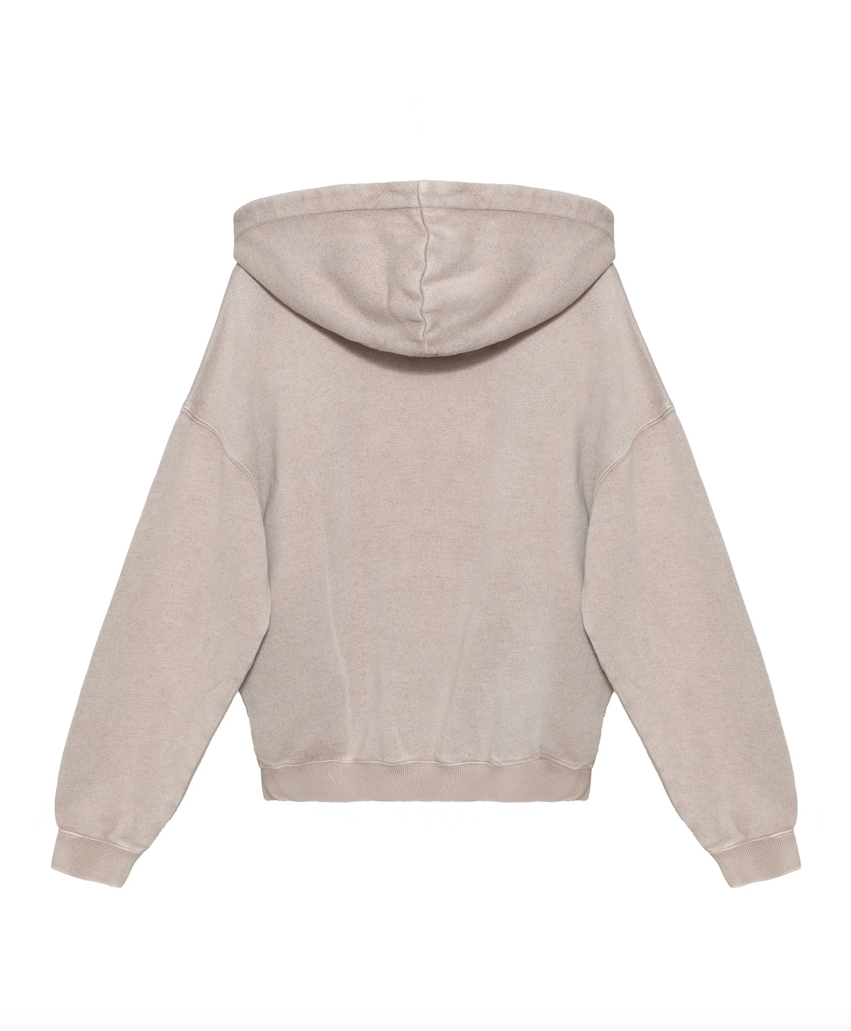 The Rocker Racer Hoodie is designed in a neutral beige tone with bold Boys Lie gothic-style beaded patchwork lettering across the chest. A small cherub logo detail is stitched near the front pocket, adding a subtle branded touch.